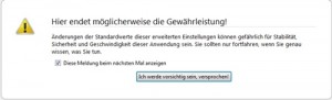 Sie bekommen gleich eine Meldung die sie mit: Ich werde vorsichtig sein, Versprochen bestätigen: